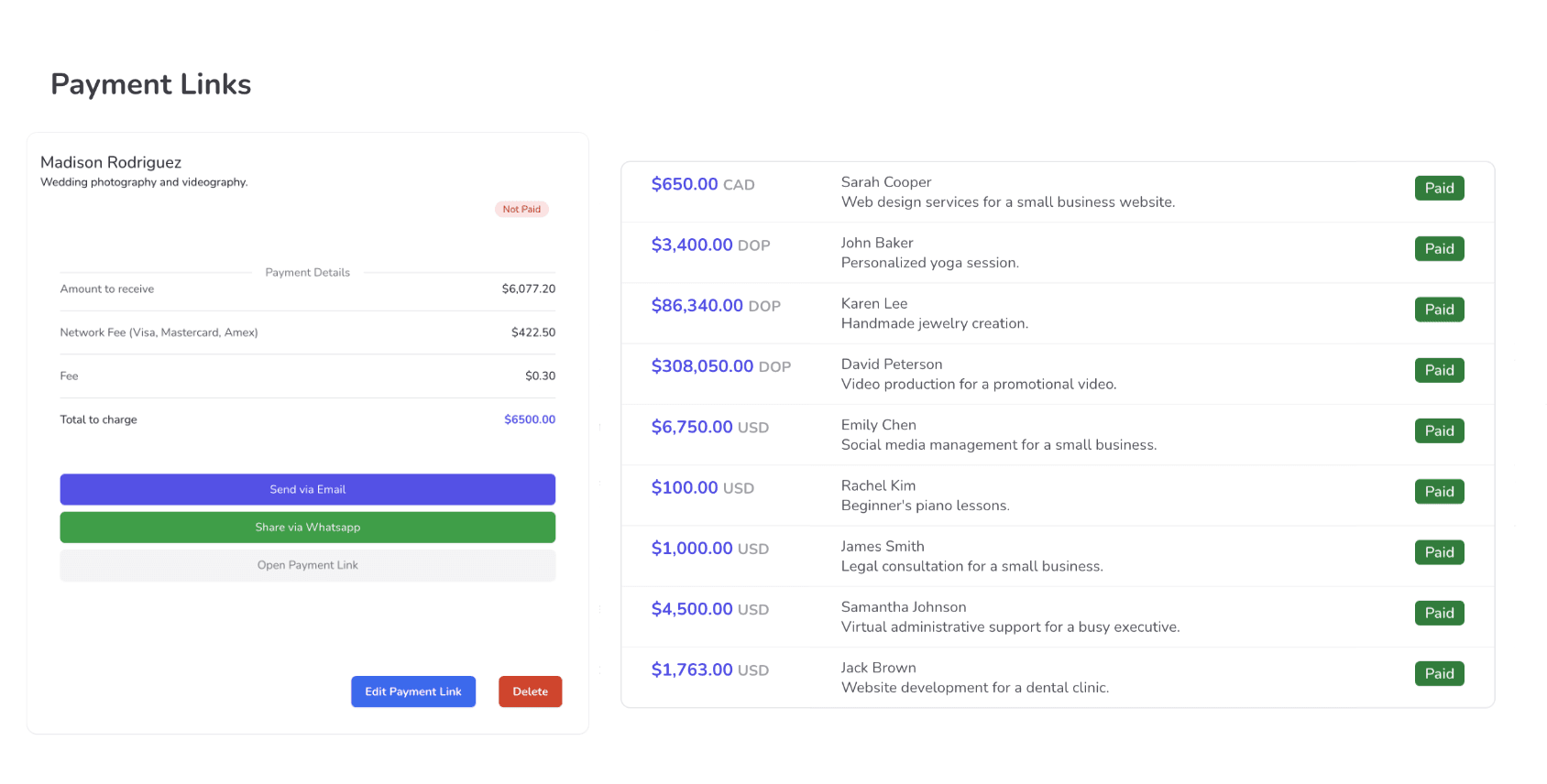 Send Payment links to your customers via WhatsApp, or generate a QR code for them to scan and pay you directly.